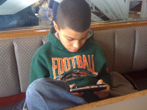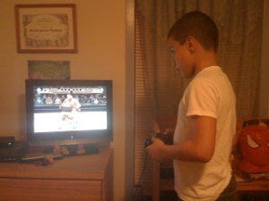 But, boy, does Justin love video games. I think he can actually get me tired of playing video games. He does this thing where he cannot sit down while playing a game. He needs to keep moving as if he has way too much sugar in his body…which he probably does (e.g. he had waffles with ice cream when we went to eat at the Cross Bronx Diner). So when he plays games like wrestling or even madden he is kicking and running in place! Thank good that my brother puts him in sports like Football and Baseball because this little kid can run.