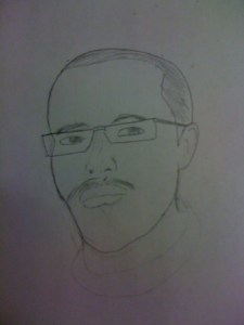 I do find interesting that I feel the need to express myself in some sort of way. I just find the use of words to be easier for me then to actually draw something. However, I did sketch the above photo this morning. It is supposed to be me and I know that I am off in a few place. It was a quick thing that I just did. I have to laugh because I took a picture of myself with my cell phone and then drew this. As, I am sketching myself I am looking at all my features. I start thinking: damn, I have a big nose…whoa my lips are kinda big….is my forehead that large?